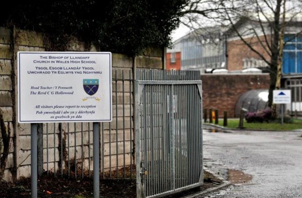 Photo: Entrance to The Bishop of Llandaff Church in Wales High School (screenshot from telegraph.co.uk).