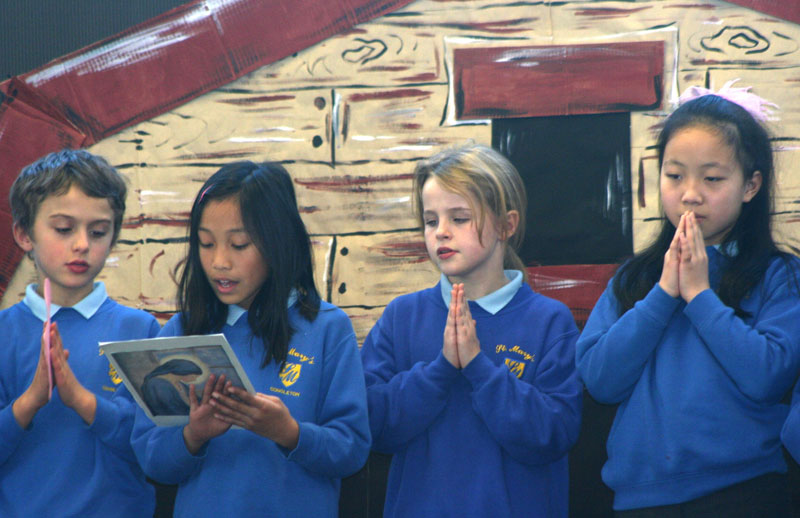The children’s presentations were interspersed with beautiful singing such as “Immaculate Mary”, “Sing of a Girl” and the little known traditional carol, “The Seven Joys of Mary”.