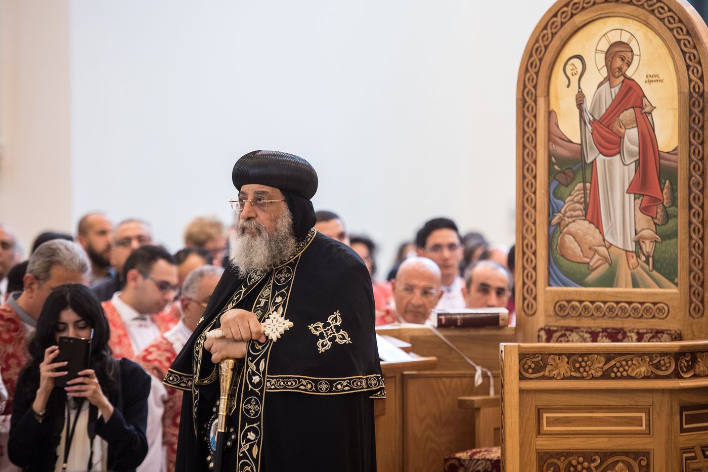 Bishop Angaelos, General Bishop of the Coptic Orthodox Church in the UK, accompanied Pope Tawadros throughout his stay.