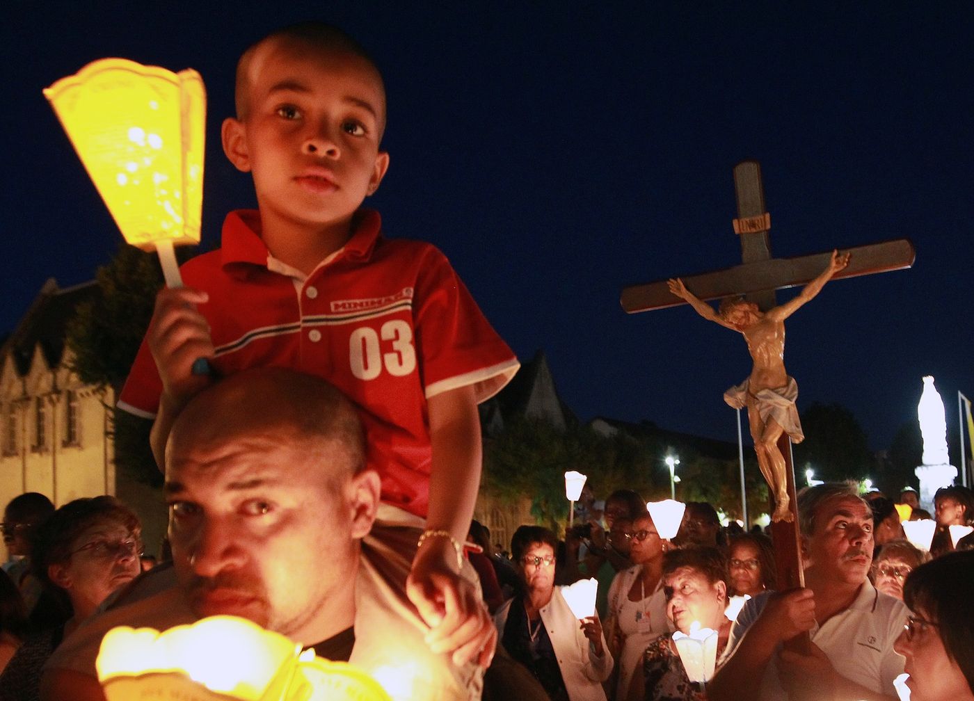 Thousands attended a candlelight procession on Sunday night, though the route was reduced from past years to ensure better security.