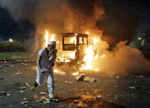 After nightfall, hard-liners clashed with police, with one death and dozens injured.