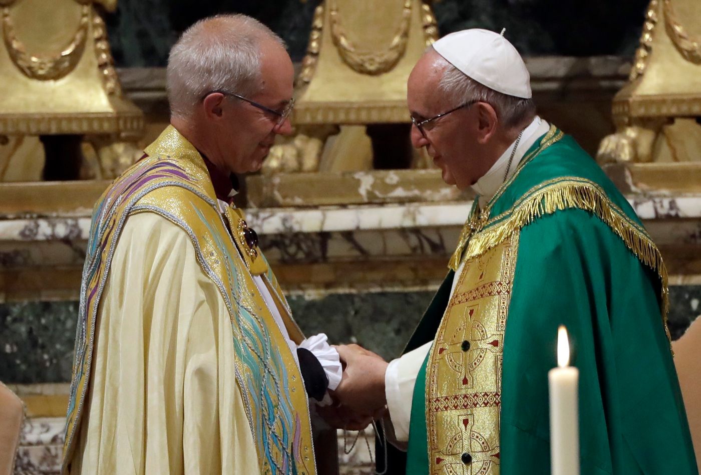 "Let the message go out from this holy place, as the good news was sent out so many centuries ago, that Catholics and Anglicans will work together to give voice to our common faith in the Lord Jesus Christ, to bring relief to the suffering, to bring peace where there is conflict, to bring dignity where it is denied and trampled upon," Pope Francis and Archbishop Welby said in their statement.