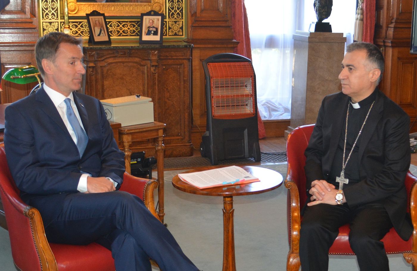 An Iraqi Church leader has met Britain's Foreign Secretary Jeremy Hunt and called on the Government to provide urgent help to prevent persecuted minority faith groups from dying out in their ancient homelands.