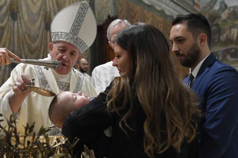 Image: Pope Francis baptizes a child in the Sistine Chapel on Jan. 12, 2020. Credit: Vatican Media.