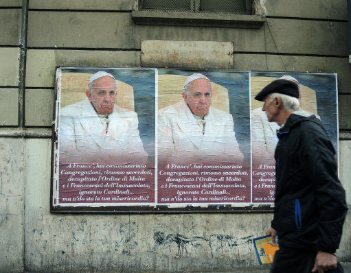 On Saturday, dozens of posters appeared around Rome featuring Pope Francis and referencing the "decapitation" of the Order.