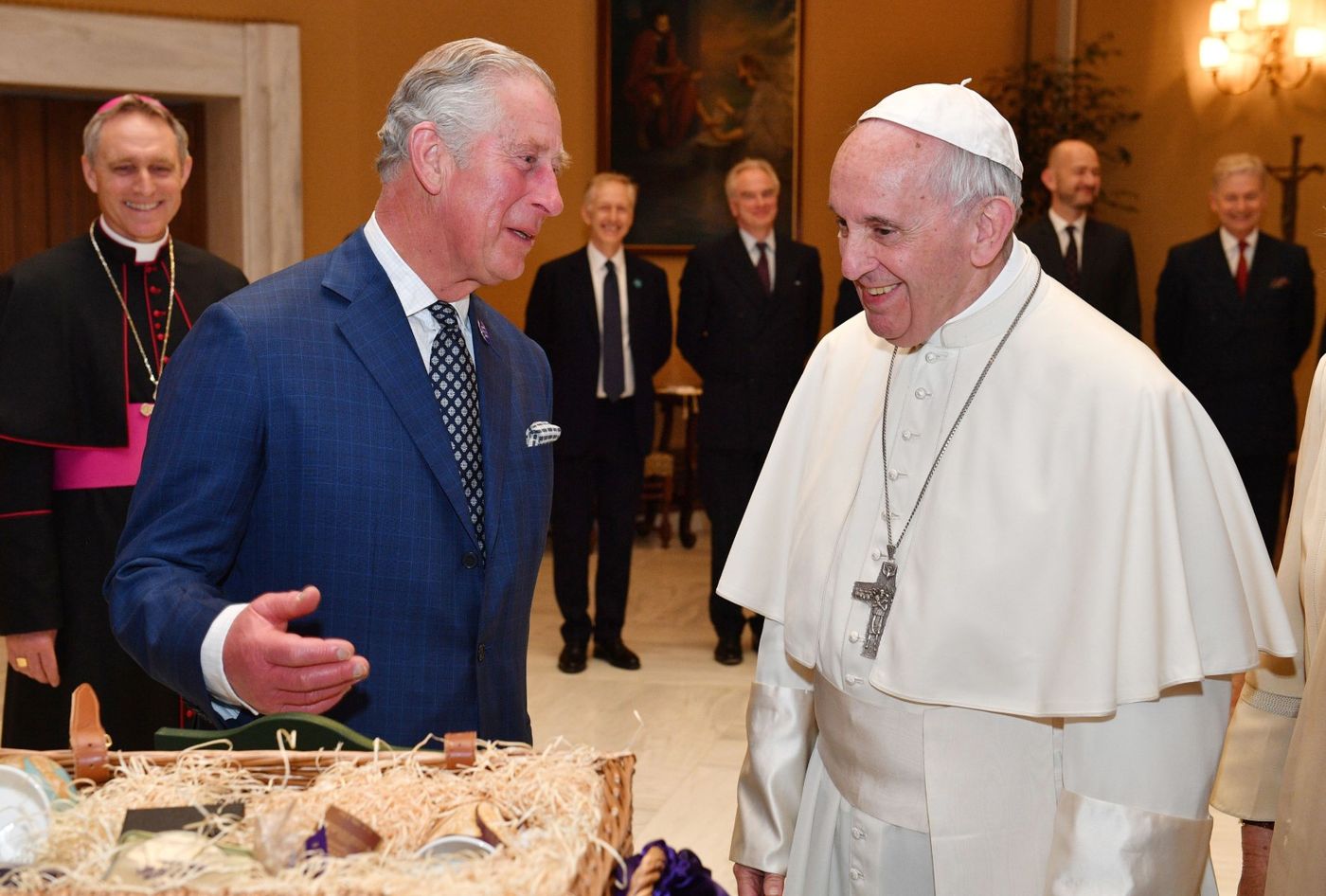 He presented the Pope with a gift basket full of produce, including tea and chocolate, from the Royal Gardens at Highgrove, their private residence.