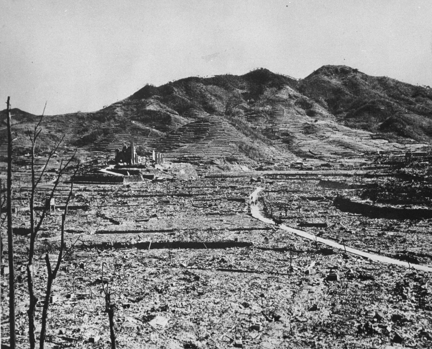 <em>The ruins of Nagasaki Cathedral after the destruction of the city by a nuclear bomb on 9 August 1945. </em>Getty Images