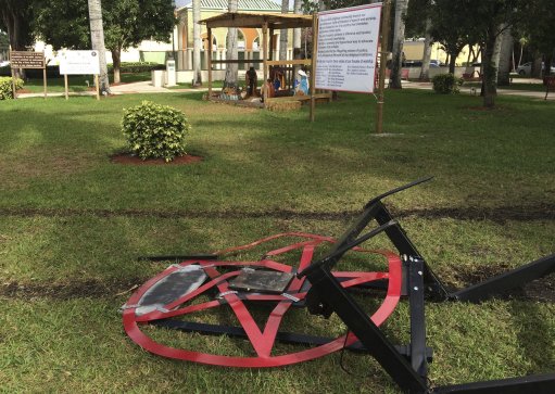 Boca Raton police officer Sandra Boonenberg said the overnight strike was the third attack on Smith's sculpture and its explanatory banner since he erected the display earlier this month.