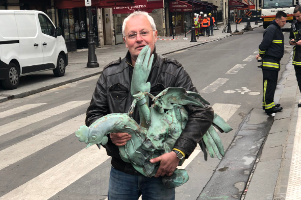 In a stroke of providence, 16 copper statues were removed from the spire for renovation work in the days before the fire. When the fire started, a pre-existing plan to rescue artwork and relics inside the cathedral was deployed, and a “formidable human chain” was created to save the art.