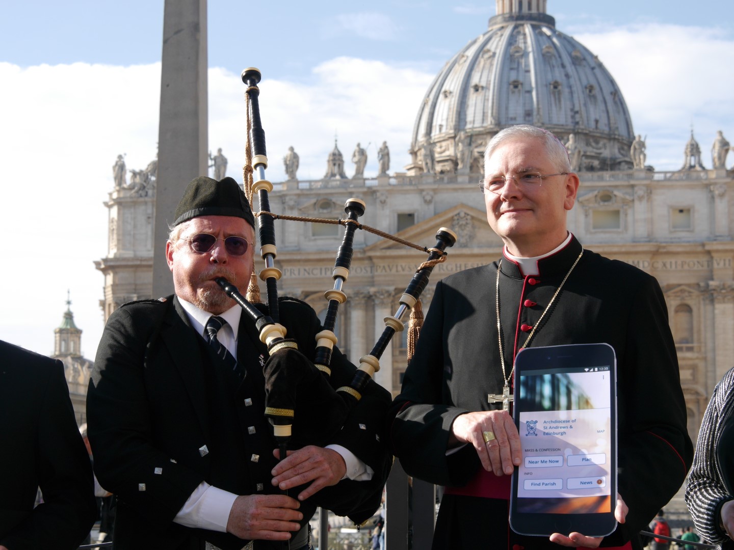 The Archbishop of St Andrews Edinburgh announced the launch of The Catholic App outside St Peter’s Basilica at the Vatican.