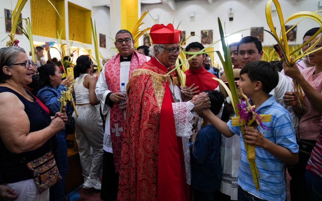 Photo: Nicaraguan Cardinal Leopoldo Brenes greets his parishioners before officiating the Palm Sunday Mass at the Metropolitan Cathedral in Managua, Nicaragua, 24 March 2024. (Photo by OSWALDO RIVAS/AFP via Getty Images.)