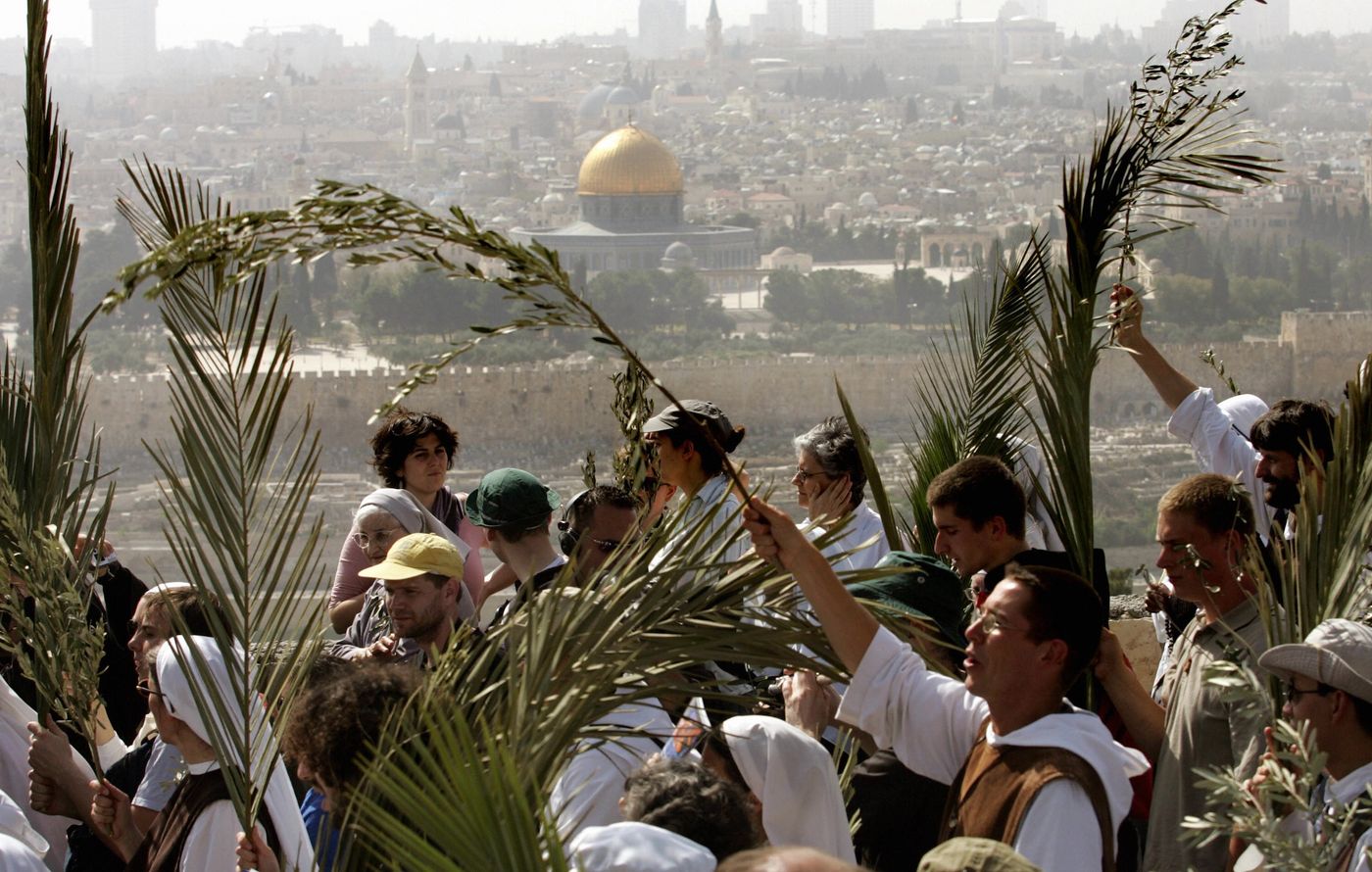 On that first Palm Sunday, pilgrims swarmed the holy city, swelling its numbers to a million. As they walked to the city they sang the Songs of Ascent ascribed to David and Solomon. But this time they suddenly saw someone not walking, but rather swaying, head and shoulders above the crowds.