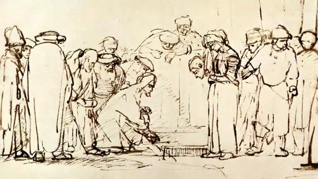 in sunday’s gospel (john 8:1–12), jesus writes on the ground in response to the pharisees’ question of whether an adulterous woman should be...