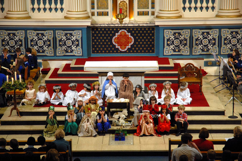 Pupils built a 'living nativity scene' on the altar at St Mary's the Mount church, Walsall